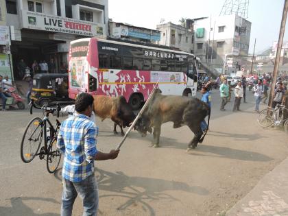ऐन वर्दळीच्या वेळी या मार्गावर दोन वळूंची झुंज लागली.