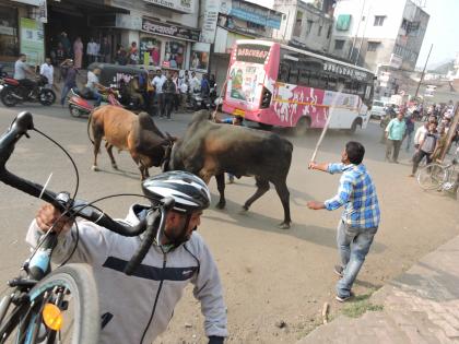 राजपथ म्हणजे सातारकरांचा जणू जीवनमार्गच आहे. शाळा, महाविद्यालय, बसस्थानक, शासकीय कार्यालयांत जाणाऱ्यांसाठी सकाळी या मार्गावरूनच जावे लागते. ऐन वर्दळीच्या वेळी या मार्गावर दोन वळूंची झुंज लागली. जागा सापडेल तिकडे ते सैरावैरा धावत असल्याने महिला, तरुणी, लहान मुलांची पळापळ झाली. अधूनमधून ते रस्त्यावर येत असल्याने वाहतूकही विस्कळीत होत होती.