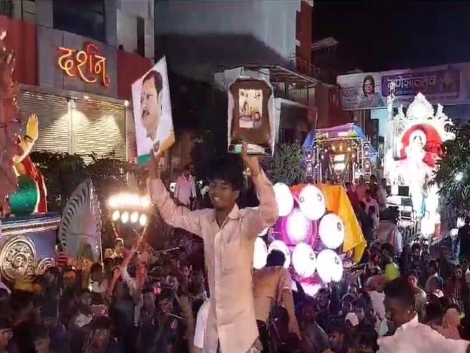 सातारा : सातारा शहरात गुरुवारी गणेश विसर्जन सोहळा मोठ्या जल्लोषात पार पडला. या सोहळ्यावेळी आमदार शिवेंद्रसिंहराजे भोसले यांच्या समर्थकांकडून मंडळांच्या स्वागतासाठी उभारण्यात आलेल्या स्टेज समोरच गणेश भक्तांनी 'आले रे आले उदयनराजे' या गाण्यावर जोरदार ठेका धरला. स्टेज आमदारांचा अन् गाणं खासदारांचं हे अनोखं समीकरण नागरिकांना उत्सवानिमित्त पाहायलाच नव्हे ऐकायलाही मिळालं.