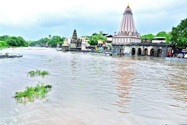 सातारा जिल्ह्यात गेल्या दोन दिवसांपासून परतीच्या पावसाने थैमान घातले आहे. रविवारी दुसºया दिवशीही बहुतांश ठिकाणी पावसाने दमदार हजेरी लावली. वाई तालुक्यात सायंकाळी पाच वाजण्याच्या सुमारास विजेच्या कडकडाटासह पावसाने हजेरी लावली. तालुक्याला सुमारे दोन तास पावसाने झोडपून काढले. पावसामुळे येथील कृष्णा नदीच्या पाणीपातळीत लक्षणीय वाढ झाली आहे. रविवारी गणेश चतुर्थी असल्याने गणेश भक्तांनी महागणपती घाटावर मुसळधार पावसातच गणपतीचे दर्शन घेतले. पाणी पातळी वाढल्याने नदी काठच्या गावांना सतर्कतेचा इशारा देण्यात आला आहे.