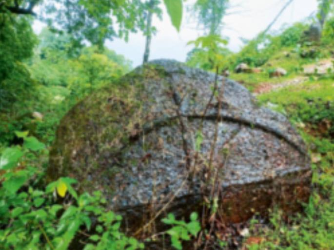 राजापूर : शहरातील फणसवडी येथे एका लॅटट्राइट दगडावर कोरीव धनुष्यबाण, तर एक भग्नावस्थेतील मूर्ती सापडली आहे. याच ठिकाणी काही मंदिरेही दिसली आहेत. कोदवली नदीच्या काठी सापडलेला हा पुरातन ठेवा आहे. ही कला ऐतिहासिक चित्रणकला असल्याचे मत पुरातत्व अभ्यासकांनी व्यक्त केले आहे.