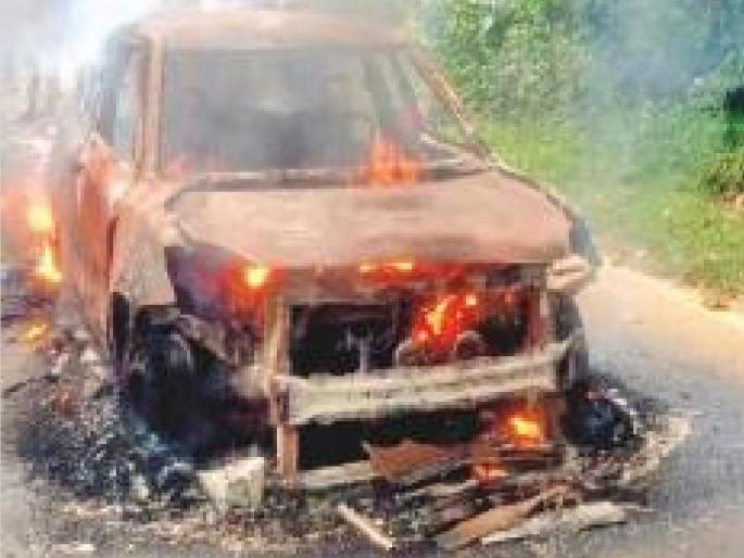 दोडामार्ग : गोमांस वाहतूक करीत असल्याच्या संशयावरून तिलारी येथे स्विफ्ट कार पेटवून दिल्याच्या प्रकरणात सुमारे ५० ते ६० जणांविरोधात पोलिसांनी गुन्हा दाखल केला आहे. गैरकायदेशीर जमाव करून जिवे ठार मारण्याचा प्रयत्न केला, तसेच लोकसेवकाला त्याचे कायदेशीर काम करण्यापासून परावृत्त केल्याची फिर्याद पोलिस परशुराम गंगाराम सावंत यांनी दिली. त्यानुसार संशयित आरोपी दोडामार्ग नगराध्यक्ष चेतन चव्हाण, भाजप तालुकाध्यक्ष दीपक गवस, महिंद्र खरवत, विजय कांबळे या चार जणांना अटक करून शुक्रवारी येथील न्यायालयात हजर केले असता न्यायालयाने त्यांना मंगळवारपर्यंत पोलिस कोठडी सुनावली असल्याची माहिती पोलिस ठाण्यातून देण्यात आली.पोलिस परशुराम गंगाराम सावंत यांनी दिलेल्या फिर्यादीत म्हटले आहे की, गुरुवार, २५ सप्टेंबर रोजी निजामुद्दीन मोहम्मद कुरेशी हा त्याचे ताब्यातील मोटर कार क्रमांक जीए ०६ एफ ४५०७ या वाहनामध्ये मांसाची वाहतूक करीत असल्याचे वीजगरचे पोस्ट येथे समक्ष मिळून आला. त्याची माहिती आपल्या वरिष्ठांना देण्यात आली. वरिष्ठांनी दिलेल्या आदेशानुसार संबंधित चालकाची खातरजमा करून पुढील कायदेशीर कारवाई करण्याकरिता दोडामार्ग पोलिस ठाणे येथे घेऊन जात होतो. दरम्यान आम्ही १२:३० वाजण्याच्या सुमारास दोडामार्ग बेळगाव रोडवर पाताळेश्वर मंदिराजवळ आलो असता सुमारे ५० ते ६० लोकांनी चारचाकी व दुचाकी वाहनाने आमचा रस्ता अडविला व जबरदस्तीने आम्हाला थांबून गाडीच्या सगळ्या काचा दगडाने व लाकडी दांड्याने फोडल्या. तसेच आरोपींनी गाडीवर पेट्रोल टाकून तिला पेटवून दिले.निजामुद्दीन मोहम्मद सय्यद कुरेशी याची ताब्यातील मोटर कार क्रमांक जीए ०६ एफ ४५०७ या वाहनातून गोमांस घेऊन जात असल्याची अफवा पसरून घटना घडवून आणली. तसेच, फिर्यादी शासकीय गणवेशात असताना आणि फिर्यादी शासकीय कर्तव्य बजावत आहेत, हे माहीत असूनदेखील संबंधित संशयित आरोपींनी असले कृत्य केल्याची फिर्यादी यांनी कायदेशीर तक्रार दिलेली आहे.