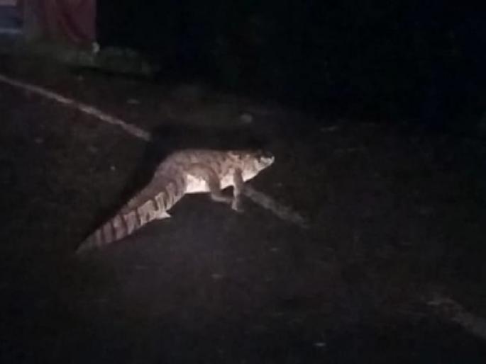 धामापूर भगवती मंदिर परीसरात रस्त्यावर मगरीचा संचार, वनविभागाकडून खबरदारीचे आवाहन