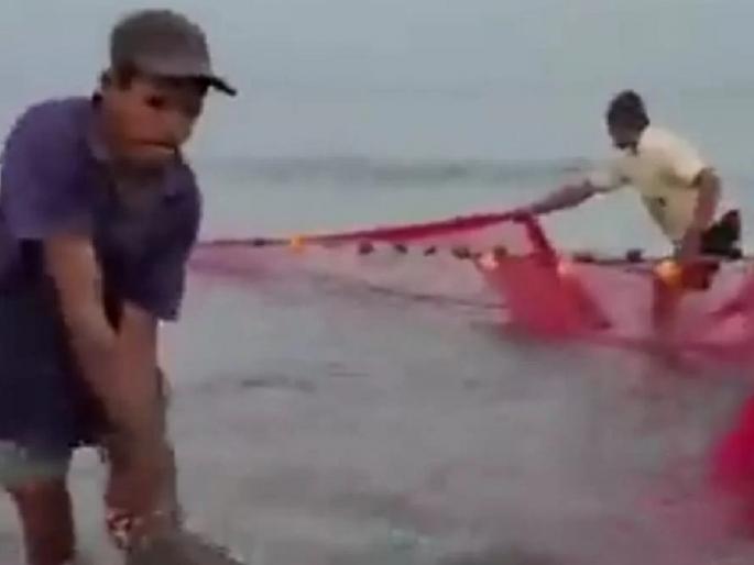 मच्छिमारांनी लावलेल्या रापण मासेमारी जाळीत अडकले चक्क डॉल्फिन मासे