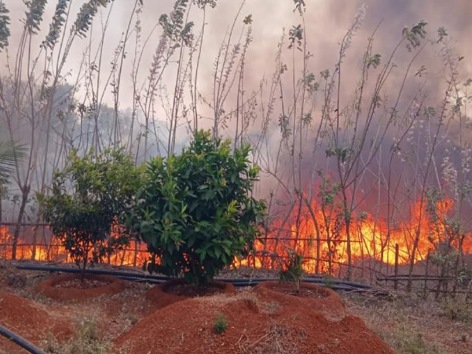 ओसरगाव येथे राष्ट्रीय महामार्गालगत काजू-आंबा बागेला आग, लाखो रुपयांचे नुकसान