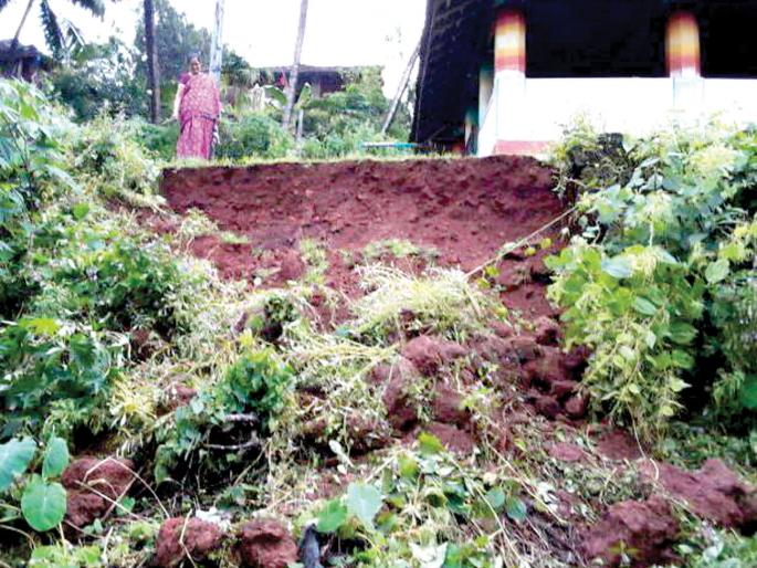 गेले बरेच दिवस मुसळधार पावसामुळे डोंगर खचण्याचे प्रकार वाढले आहेत. त्यामुळे अनेक घरांची पडझड होत आहे. यातच शुक्रवारी रात्री अचानक चेंदवण भवानी मंदिराची संरक्षक भिंत कोसळली.