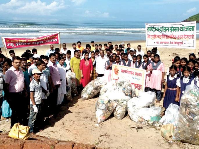 यात तालुक्यात कॅरीबॅग्ज, पातळ पिशव्या १९८ किलो, अपारदर्शक प्लास्टिक दुधाच्या पिशव्या ११४ किलो, वेफर्स पाकिटे, कुरकुरे, फ्रुटी, बिस्कीट पुडे यांचे रॅपर ११० किलो, प्लास्टिक बाटल्या ४०३ किलो व कॅन, तेलाच्या पिशव्या, औषधांच्या बाटल्या १४५ किलो एवढा कचरा गोळा केला.प्लास्टिकचा कचरा मोठ्या प्रमाणाततालुक्यातील ६५ गावांमधून ९७० किलो प्लास्टिक कचरा गोळा करण्यात आला. यात तालुक्यात कॅरीबॅग्ज, पातळ पिशव्या, अपारदर्शक प्लास्टिक दुधाच्या पिशव्या, वेफर्स पाकिटे, कुरकुरे, प्लास्टिक बाटल्या व कॅन, तेलाच्या पिशव्या, औषधांच्या बाटल्या आदी प्लास्टिकचा कचरा मोठ्या प्रमाणात दिसून आला.प्लास्टिक पिकअप डे निमित्त मालवण किनारपट्टीवर स्वच्छता अभियान राबविण्यात आले.