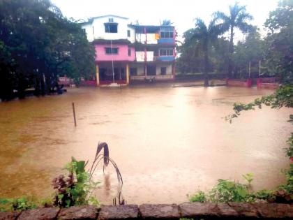 सोनाळी येथील अभिनव विद्यामंदिरच्या प्रांगणात पुराचे पाणी आल्यामुळे शाळा व्यवस्थापनाची तारांबळ उडाली.