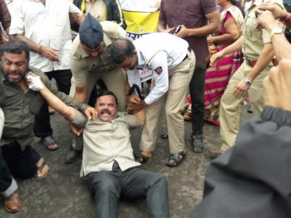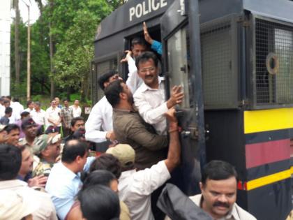या सर्व आंदोलनकर्त्यांना ताब्यात घेण्यासाठी पोलिस सरसावले मात्र यावेळी सर्व आंदोलनकर्त्यांनी महामार्गावरच ठिय्या आंदोलन सुरू केल्यामुंळे पोलिसांनी या आंदोलन कर्त्यांना उचलत पोलिस व्हॅन मध्ये कोंबले. गाडीत सुमारे १५ मिनिटे महामार्ग रोखुन धरल्याने वाहनांच्या दुतर्फा लांबच लांब रांगा लागल्या होत्या.