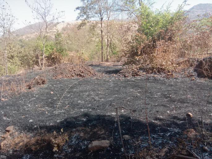 नाटळ थोरले मोहुळ येथील शेतकरी धर्माजी खरात यांच्या काजूबागेला व गवताच्या गंजीला आग लागल्याने त्यांचे मोठे नुकसान झाले आहे. (मिलिंद डोंगरे)
