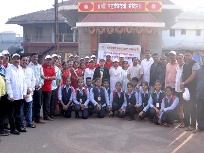 तसेच डिजीटल तंत्र स्क्रिनद्वारे स्वच्छताविषयीची डॉक्युमेंटरीव्दारे जनजागृती केली.पटकीदेवी मंदिर मार्गे ढालकाठी- बाजारपेठ मार्गे पटवर्धन चौक हायवे मार्गे उपजिल्हा रुग्णालय येथे जात या फेरीचा समारोप करण्यात आला.