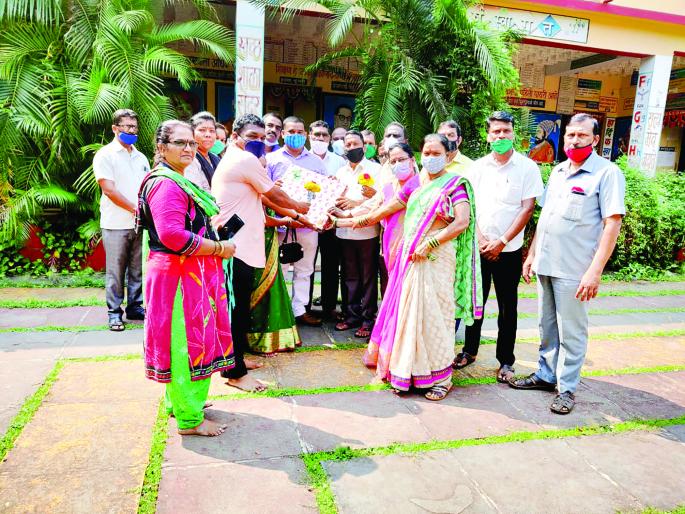 खारेपाटण : कणकवली तालुक्यातील खारेपाटण जिल्हा परिषद पूर्ण प्राथमिक केंद्र शाळा नं.१ ची निवड ही राज्यातील आदर्श शाळा म्हणून झाली आहे. येथील शिक्षक व शाळा व्यवस्थापन समितीने केलेल्या उल्लेखनीय कामामुळे ही शाळा सिंधुदुर्ग जिल्ह्याचे भूषण ठरेल. असे भावपूर्ण उदगार जिल्हा परिषद बांधकाम व वित्त सभापती रवींद्र उर्फ बाळा जठार यांनी खारेपाटण केंद्र शाळेच्या सत्कार प्रसंगी शुभेच्छा देताना काढले.खारेपाटण केंद्र शाळेला कणकवली तालुका पंचायत समितीचे सभापती दिलीप तळेकर यांनी सदिच्छा भेट दिली. शाळेच्या निवडी बद्दल शिक्षकांचे व पालक, व्यवस्थापन समितीचे कौतुक केले. यावेळी शाळा व्यवस्थापन समितीचे अध्यक्ष संतोष पाटणकर यांच्या शुभहस्ते सभापती दिलीप तळेकर आणि बांधकाम सभापती रवींद्र जठार यांचा पुष्पगुच्छ देऊन सत्कार करण्यात आला. तर जिल्हा परिषद खारेपाटण विभागाचे माजी जिल्हा परिषद सदस्य बाळा वळंजू यांच्या ११ व्या स्मृती दिनानिमित्त बाळा जठार व दिलीप तळेकर यांनी शाळेला भेट वस्तू देऊन शाळेचे अभिनंदन केले.या कार्यक्रमाला पंचायत समिती सदस्या तृप्ती मळवदे, भाजपा जिल्हा सरचिटणीस रवींद्र शेट्ये, चिंचवली तंटामुक्ती अध्यक्ष सूर्यकांत भालेकर, खारेपाटण उपसरपंच इस्माईल मुकादम, वारगाव माजी सरपंच एकनाथ कोकाटे, शेर्पे उपसरपंच रामा पांचाळ, खारेपाटण माजी सरपंच वीरेंद्र चिके, राजेश माळवदे, खारेपाटण ग्रामपंचायत सदस्या उज्ज्वला चिके केंद्रप्रमुख सद् गुरू कुबल, खारेपाटण शाळेचे केंद्रमुख्याध्यापक प्रदीप श्रावणकर, शाळा समिती सदस्य शिवाजी राऊत, माता पालक संघाच्या उपाध्यक्षा समीक्षा शेट्ये, समृद्धी लोकरे, रिया जाधव, शिक्षिका कोरगावकर, मोरे, अर्चना तळगावकर, पारकर आदी उपस्थित होते.शाळेकडे येणारा रस्ता जिल्हा परिषद फंडातून डांबरीकरण करणार : जठारखारेपाटण केंद्र शाळेला सदिच्छा भेट देण्यासाठी व या शाळेचे विशेष अभिनंदन करण्यासाठी कणकवली सभापती दिलीप तळेकर व बांधकाम सभापती रविंदत जठार हे खारेपाटण ला आले होते. यावेळी शाळेकडे येणारा रस्ता हा राज्य शासनाच्या फंडाची वाट न बघता जिल्हा परिषद फंडातून डांबरीकरण करून दिला जाईल असे आश्वासन यावेळी बांधकाम सभापती रवींद्र जठार यांनी उपस्थितांना दिले. कार्यक्रमाचे प्रास्ताविक संतोष पाटणकर यांनी केले. सूत्रसंचालन मुख्याध्यापक प्रदीप श्रावणकर तर आभार शाळेच्या पदवीधर शिक्षिका अर्चना तळगावकर यांनी मानले. यावेळी काही पालक उपस्थित होते.