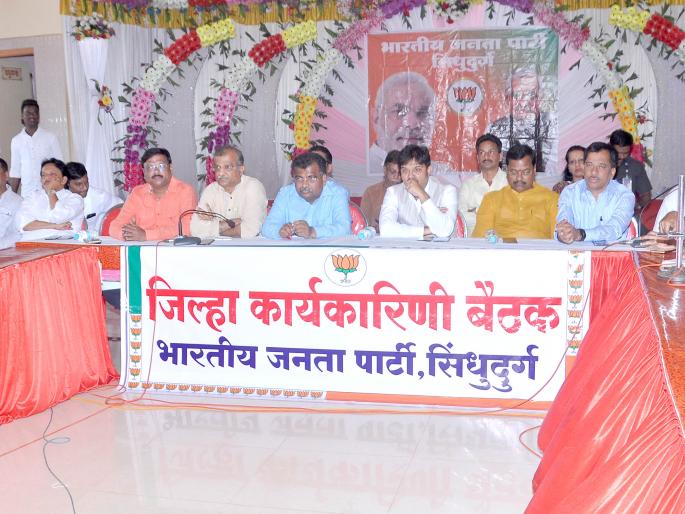 कणकवली येथील भगवती मंगल कार्यालयात भाजप जिल्हा कार्यकारिणीची बैठक झाली.
