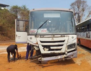 खड्डे चुकवताना एसटी बस दगडाला धडकली, चालकाच्या प्रसंगावधानाने दुर्घटना टळली; वैभववाडीत झाला अपघात