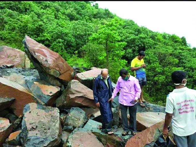 डोंगराचा काही भाग खचला, तहसीलदारांनी केली पाहणी
