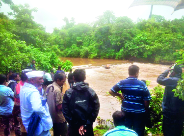 रविवारी सकाळी कोल्हापूरचे जीवरक्षक दिनकर कांबळे व त्यांचा साथीदार यांनी सकाळी ९.३० वा. बुडालेले ठिकाण ते नागसावंतवाडी खांडसरी पुलापर्यंत पाण्याच्या प्रवाहात उतरून सायंकाळी चार वाजेपर्यंत शोधकार्य केले. मात्र, राहुल पाटील याचा पत्ता लागलेला नाही. यानंतर सायंकाळी पाच वाजता आपत्कालीन विभाग मालवण स्कुबा डायव्हिंगचे दामोदर तोडणकर, आजिम मुजावर, योगेश मेस्त्री,आसिफ मुजावर ही टीम दाखल झाली. त्यांनी खोलवर जाऊन तब्बल दीड तास शोध घेतला. मात्र, त्यांनाही काहीही सापडले नाही. यानंतर काळोख पडत असल्याने सायंकाळी शोधमोहीम थांबवण्यात आली.