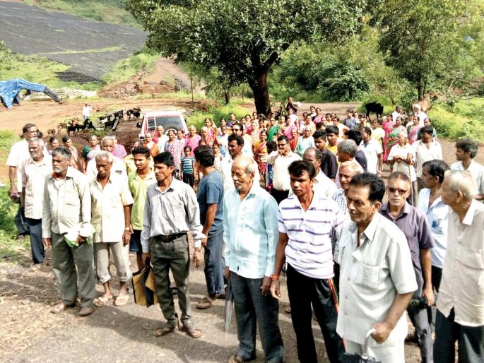 मात्र, प्रकल्पग्रस्तांच्या प्रलंबित मागण्यांकडे कानाडोळा करीत प्रशासन मोबदला वाटपाची नोटीस प्रकल्पग्रस्तांच्या माथी मारण्याचा प्रयत्न करीत आहे. या आंदोलनात समिती अध्यक्ष रंगानाथ नागप, सचिव शिवाजी बांद्रे, वसंत नागप, शांतीनाथ गुरव, एकनाथ मोरे, विजय भालेकर, सुरेश नागप, विलास कदम, यांच्यासह सुमारे दोनशे प्रकल्पग्रस्त आंदोलनात सहभागी झाले आहेत. रात्री उशीरापर्यंत प्रकल्पग्रस्त अरुणा प्रकल्पस्थळी ठाण मांडून होते. त्यामुळे मंगळवारी नेमके काय घडते याकडे लक्ष लागले आहे.बळाचा वापर हाणून पाडूप्रकल्पग्रस्तांमध्ये प्रशासनाच्या भूमिकेबाबत संताप निर्माण झाला असल्याने सोमवारी सकाळपासूनच अबालवृद्धांसह, अगदी गुराढोरांना सोबत घेऊन प्रकल्पग्रस्तांनी प्रकल्पस्थळी आंदोलनास सुरुवात केली आहे. मंगळवारी नोटीस वाटप करण्यास येणाऱ्यां अधिकारी व कर्मचाऱ्यांना गावात पाय ठेऊ द्यायचा नाही. बळाचा वापर करुन नोटीस वाटण्याचा प्रयत्न केल्यास तो हाणून पाडू. त्यावेळी अनुचित प्रकार घडल्यास त्याला प्रशासन जबाबदार राहील, असा इशारा संघर्ष कृती समितीने दिला आहे.
