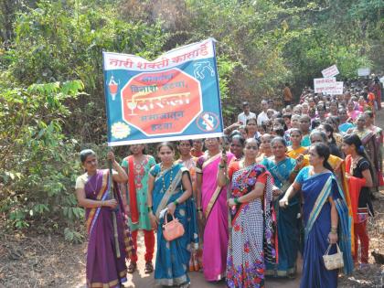 कासार्डेतील महिलांनी दारूबंदी साठी आयोजित केलेल्या महिला ग्रामसभेला महिलांचे घोषणा देत ग्रामपंचायतमध्ये आगमन झाले. यावेळी दारूबंदीचे समर्थन करणारा फलक हातात होता.