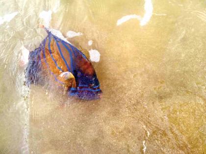 मालवण किनाऱ्यावर समुद्रात शेळ लागल्यामुळे अनेक प्रजातीचे मासे रापणीच्या जाळ्यात मिळत आहेत. त्यातील हे काडय, वागळी तसेच शोभिवंत मासे दिसत आहेत.