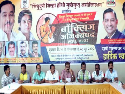 कणकवली येथे आयोजित पत्रकार परिषदेत ते बोलत होते. यावेळी महाराष्ट्र रेफरी समितीचे चेअरमन व तांत्रिक अधिकारी (मुख्य) राजन जोथाडी, महाराष्ट्र बॉक्सिंग संघटना उपाध्यक्ष भरतकुमार व्हावळ, जिल्हा संघटनेचे उपाध्यक्ष सुभाष दळवी, खजिनदार कृष्णा मातेफोड, सदस्य एकनाथ चव्हाण, नरेंद्र सावंत, विजय घरत, संतोष गुराम, श्रीकृष्ण आजगावकर, सर्वेश दळवी, रुपेश दळवी आदी उपस्थित होते.