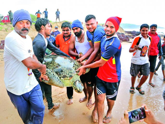 वन्यजीव अभ्यासक प्रा. नागेश दप्तरदार यांनी तो कासव ग्रीन टर्टल जातीचा असून समुद्रातील कासवे खाडीमध्ये शेवाळ, जेलिफिश या खाद्यासाठी जातात असे सांगितले. हे महाकाय कासव ४ फूट लांबीचे व अडीच फूट रुंदीचे होते. कासव समुद्रात सोडताना लक्ष्मण तारी, भाई नरे, सागर सुरक्षा रक्षक सुदेश नारकर, अमित बांदकर आदी उपस्थित होते.
