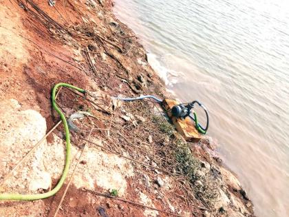 कोळंब पूल दुरुस्ती बांधकामासाठी खाडीत पंप लावून खाऱ्या पाण्याचा उपसा सुरू होता.