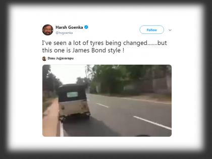 सोशल मीडियात एक अफलातून व्हिडीओ व्हायरल झाला असून हा व्हिडीओ उद्योगपती हर्ष गोयनका यांनीही शेअर केला आहे. या व्हिडीओत भर रस्त्यात चालत्या ऑटोरिक्षाचा टायर बदलण्यात आल्याचं बघायला मिळतं. गाड्यांचे गॅरेजमध्ये टायर कसे बदलले जातात हे तुम्ही अनेकदा पाहिलं असेल, पण अशाप्रकारचा कारनामा पहिल्यांदाच लोकांनी पाहिला. त्यामुळे लोक हैराण झाले आहेत.