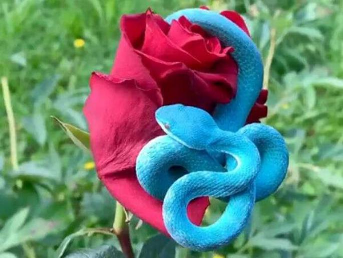 प्रत्यक्षात किंवा सिनेमात तुम्ही अनेक वेगवेगळ्या प्रकारचे साप पाहिले असतील. पण कधी निळ्या रंगाचा साप पाहिलाय का? नाही ना...सध्या सोशल मीडियात एका दुर्मीळ निळ्या रंगाच्या सापाचा व्हिडीओ व्हायरल झालाय. हा सुंदर साप पाहून लोक हैराण झाले आहेत. या व्हिडीओची खासियत म्हणजे यात नुसता साप नाहीये तर तो गुलाबाच्या फुलाला गुंडाळी मारून बसलाय त्याने तो अधिक सुंदर दिसतो.