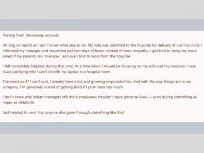 "माझ्या कंपनीतील परिस्थिती अशी आहे की जर मी जास्त काही बोललो तर मला कामावरून काढून टाकलं जाण्याची भीती वाटते. मला माहित नाही की भारतीय मॅनेजर अजूनही असं का मानतात की कर्मचाऱ्यांनी पर्सनल आयुष्य जगू नये, अगदी मुलाच्या जन्मासारख्या मोठ्या घटनेच्या वेळीही. मला फक्त माझं मत व्यक्त करायचं होतं. इतर कोणालाही असेच काही अनुभव आले आहे का?" या पोस्टवर आता लोक वेगवेगळ्या कमेंट करत आहेत.