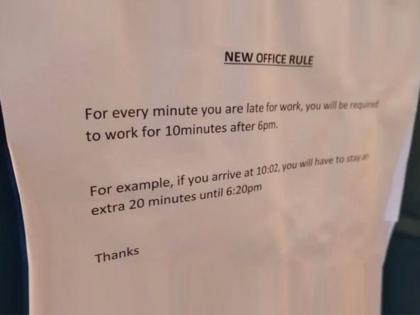 एका ऑफिसच्या अतिशय विचित्र नियमाची सोशल मीडियावर जोरदार चर्चा रंगली आहे. ज्यामध्ये एका बॉसने कर्मचार्यांना 1 मिनिटही उशीर झाला तरी कडक शिक्षेची घोषणा केली आहे.