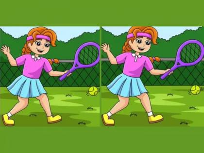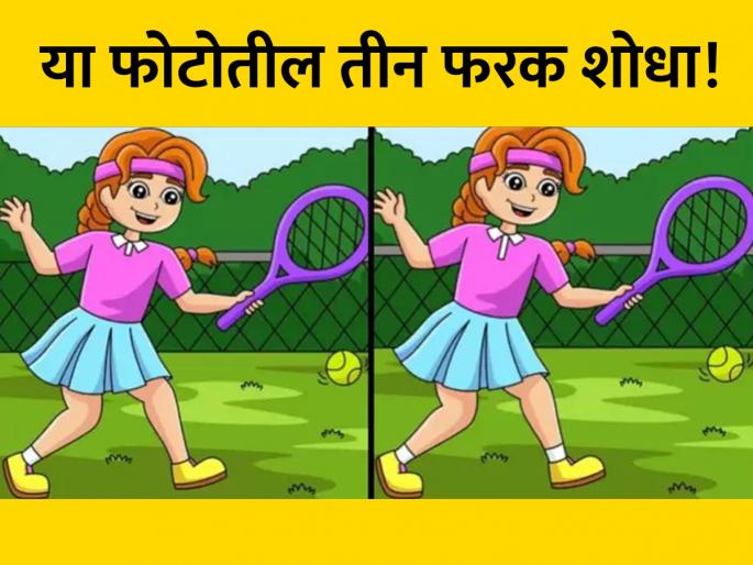 हे दोन्ही फोटो दिसायला अगदी एकसारखे आहेत. दोन्हींमध्ये एक मुलगी टेनिस खेळताना दिसत आहे. तिच्या शूजचा रंग पिवळा आहे. गुलाबी रंगाची टीर्शट आहे. आकाशी रंगाचा स्कर्ट आहे. हातात जांभळ्या रंगाची रॅकेट आहे. तसेच हिरव्या रंगाचा बॉल, बॅकग्राउंडमध्ये नेट आणि हिरवीगार झाडी आहेत. तुम्हाला या सगळ्या गोष्टी बारकाईने बघून यातील फरक शोधायचा आहे.