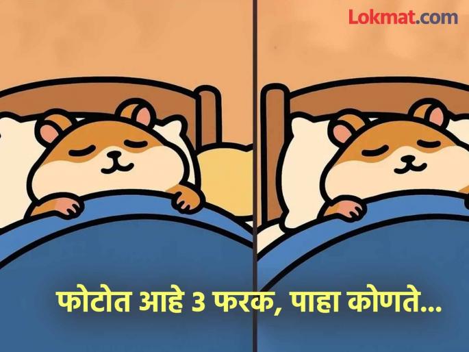 आपण पाहिलं असेल की, वेगवेगळ्या सोशल मीडिया प्लॅटफॉर्मवर वेगवेगळे फोटो व्हायरल होत असतात. म्हणजे काही फोटोंमध्ये वस्तू किंवा प्राणी शोधण्याचं चॅलेंज दिलं जातं, तर काही फोटोंमध्ये वेगळे नंबर शोधण्याचं, तर काहींमध्ये एकसारख्या दिसणाऱ्या दोन फोटोंमध्ये फरक शोधायचा असतो. असाच हा फोटो आहे. आपण बघू शकता की, हॅमस्टर नावाचा एक प्राणी बेडवर झोपला आहे. दोन्ही फोटो एकसारखे दिसतात. पण मुळात ते एकसारखे नाहीच. त्यांमध्ये ३ फरक आहेत. तेच आपल्याला २५ सेकंदात शोधायचे आहे. चला तर मग लागा कामाला....