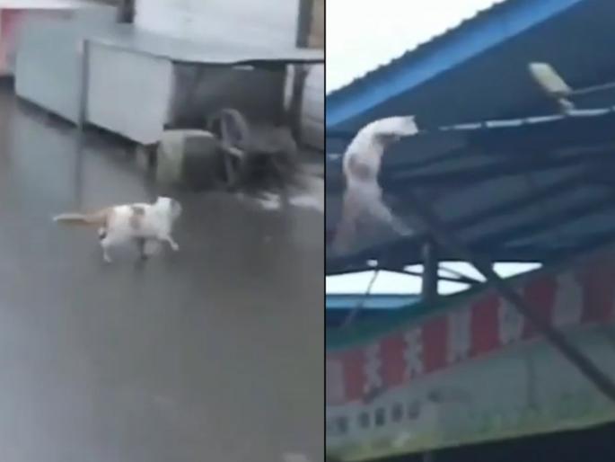 शेडवर मांजर लटकताना दिसतं. शेडवर जाण्यासाठी ती धडपड करत असते. अचानक तिचा बॅलेन्स बिघडतो. ती घसरून थेट जमिनीवर आपटते. आता मांजर असो, दुसरा कोणता प्राणी असो किंवा माणूस इतक्या उंचावरून पडल्यानंतर त्याचं काय होईल हे तुम्हाला माहितीच आहे. सरळ तर कुणी पडणारच नाही पण हे मांजर ज्या पद्धतीने पडलं ते पाहून सर्वजण थक्क झाले आहेत.