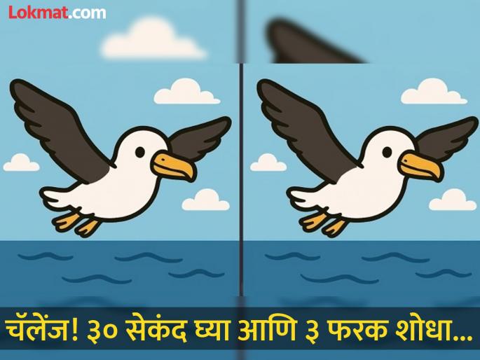 आजचे कोडे तुम्हाला नक्कीच विचारात पाडेल. हे आव्हान स्वीकारायला तुम्ही तयार आहात का? समुद्रावर उडणाऱ्या एका पक्ष्याच्या दोन एकसारख्या दिसणाऱ्या चित्रांकडे नीट पाहा. ही चित्र जरी सारखी वाटत असली तरी त्यामध्ये ३ सूक्ष्म फरक लपलेले आहेत. तुम्ही ते शोधू शकता का? महत्वाची बाब म्हणजे हे फरक शोधण्यासाठी आपल्याकडे ३० सेकंदाची वेळ आहे. ३० सेकंदाच्या आतच फरक शोधले गेले पाहिजे. तरच यात मजा येईल.