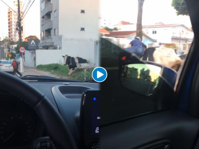 ही घटना ब्राझिलमधील आहे. या घटनेचा धक्कादायक व्हिडिओ समोर आला आहे, ज्यामध्ये एक गाय अचानक धावताना दिसत आहे. व्हिडीओमध्ये तुम्ही बघू शकता की, ट्रॅफिक सिग्नलवर गाय सरळ धावत येते. रस्त्यावरुन वाहनं भरधाव वेगाने जात असतात. त्यानंतर भरधाव वेगाने येणाऱ्या दुचाकीला गाय आदळते. दुचाकीस्वाराला काही समजेल तोपर्यंत तो उडी मारून रस्त्यावर पडतो. त्यानंतर गाय तिथून निघून जाते.