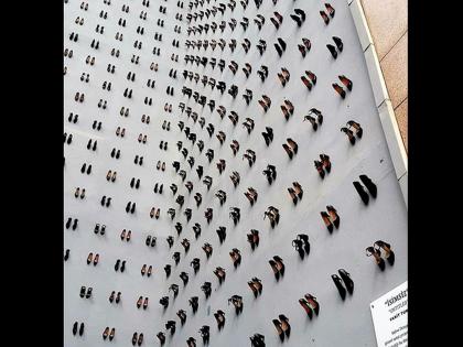 तुर्कीतील इस्तांबुलमध्ये एका इमारतीवर सॅंडलचे ४४० जोड लटकवण्यात आले आहेत. तुर्कीच्या आर्टिस्टने या सॅंडलच्या माध्यमातून देशातील त्या महिलांची आठवण जागवली, ज्यांना गेल्या काही वर्षात पतीच्या हातून जीवे मारण्यात आलं.