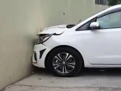 शोरूममधून बाहेर काढताना ड्रायव्हरने भिंतीवर ठोकली नवी कोरी कार, व्हिडीओ व्हायरल