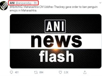महाराष्ट्र सरकारच्या या ब्रेकिंगसोबत ANI नावाच्या ट्विटर हँडलचा वापर स्क्रीनशॉट शेअर केला जात आहे. या ट्विटमध्ये ब्रेकिंग न्यूज अपडेट देत दावा केला आहे की, महाराष्ट्र सरकारने पेंग्विनच्या इमोजीवर बंदी आणली आहे. सोशल मीडियात युजर्स मोठ्या प्रमाणात याचे स्क्रीनशॉट व्हायरल करत आहेत आणि सरकारकडे आता हेच काम उरलं आहे का? असा प्रश्न विचारला जात आहे.