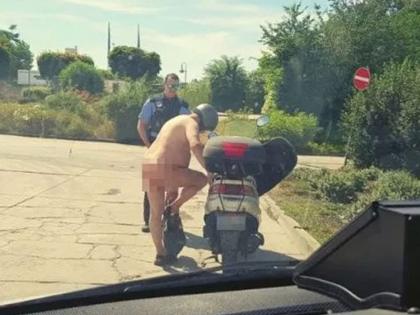 या व्यक्तीने कपडे काढले आणि स्कूटी चालवू लागला. मजेदार बाब ही आहे की, पोलिसांनीही त्याला रोखलं नाही. पोलिसाही म्हणाले की, अशात तो तरी काय करणार?