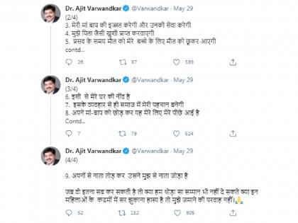शेवटी डॉ. अजीत वारवंडकर यांनी पोस्टमध्ये लिहिले की, 'जेव्हा ती इतकं सगळं करू शकते तर आपण काय थोडा सन्मानही देऊ शकत नाही. महिलांच्या पाया पडणं हास्य असेल तर मला जगाची पर्वा नाही'.