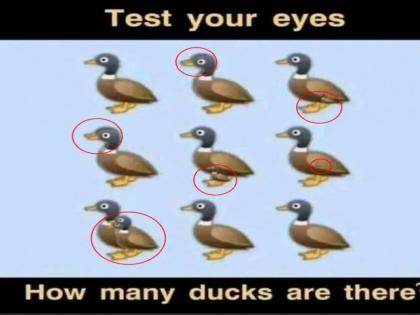 डेनिअल न्यूमॅन नावाच्या एका ट्विटर यूजरने हा फोटो शेअर केला. पहिल्यांदा तुम्ही फोटो बघाल तर तुम्हाला यात केवळ ९ बदकं असल्याचं दिसेल. पण जेव्हा तुम्ही लक्ष देऊन बघाल तर तुम्हाला फोटोत आणखी काही छोटे बदक दिसतात. पण यात एकूण किती बदक आहे ते तुम्हाला ओळखायचं आहे.