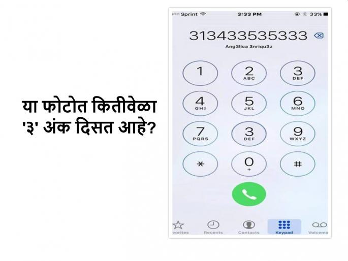 व्हायरल होणाऱ्या या फोटोत मोबाईल किपॅडचा स्क्रिनशॉट्स आहे. त्यासोबत डायल पॅडवर काही नंबर लिहिलेले दिसून येत आहेत. या फोटोत तुम्हाला नेमके किती ३ दिसतात असं फोटो शेअर करून सांगितले जात आहे. योग्य उत्तर देणाऱ्याला इंटरनेट युजर्स जीनियस प्रतिक्रिया देत कौतुक करत आहेत. परंतु बहुतांश लोकांना या प्रश्नाचं योग्य उत्तर देण्यात अपयश आले आहे. तुम्हीही हा फोटो पाहून बरोबर उत्तर देण्याचा प्रयत्न करू शकता. अनेकांनी हे कोडं सोडवण्याचा प्रयत्न केला. परंतु बरोबर उत्तर काहीच लोकं देऊ शकले.