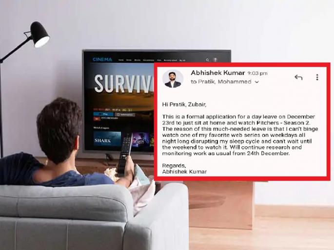 अभिशेक कुमार नावाचा कर्मचारी आपल्या बॉसला एक मेल पाठवतो, ज्यात तो “Pitchers” नावाची वेब सीरिज पाहण्यासाठी सुट्टी हवीये, अशी विनंती करतो. तो लिहितो की, ‘23 डिसेंबरला सुट्टी हवीये, यासाठीच हा अर्ज लिहितो आङे. मला घरात बसून Pitchers- Season 2 पाहायची आहे.'