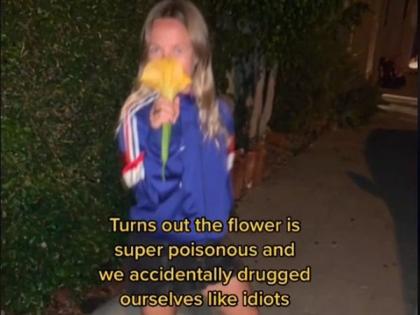 तर झालं असं की, टिकटॉकर, साँग रायटर आणि सिंगर रफैला वेमन हिला आणि तिच्या मैत्रिणीला एक फुल दिसले. त्यांनी लगेच त्याचा वास घ्यायला सुरुवात केली. काहीवेळाने त्यांना नशा झाल्यासारखे वाटू लागले. रफैला म्हणते, ते फुल सुपर विषारी होतं ज्या फुलाचा आम्ही मुर्खासारखा चुकीने वास घेतला होता.