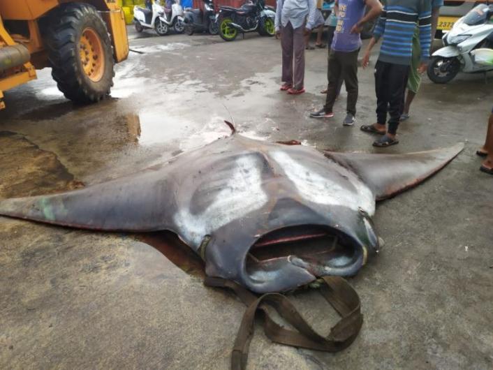 मासेमाराच्या गळाला लागला ७५० किलोंचा दुर्मिळ 'मंटा-रे' मासा