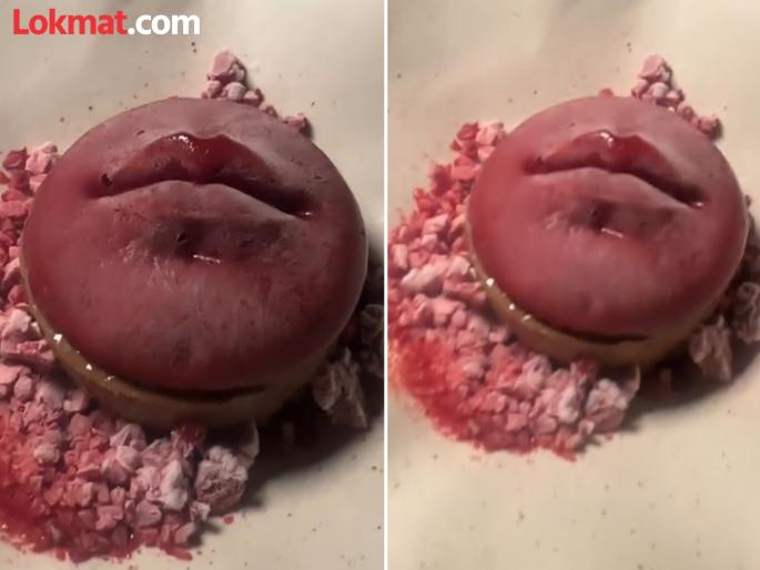 खरंतर ही एक खासप्रकारची मिठाई असते. एक खास डेजर्ट. जे रेड बेरी सोरबेट आणि चॉकलेटपासून तयार केलं जातं. याला पूर्णपणे ओठांचा आकार देण्यात आला. व्हिडीओ बघून लोकांनी सुद्धा अनेक मजेदार कमेंट्स केल्या आहेत. एकाने लिहिलं की, 'असं वाटतं शेफ जरा जास्तच इमोशनल झालाय'. तर कुणी म्हणालं की, 'आता हे खाल्ल्यानंतर घरी कसा जाणार?'.