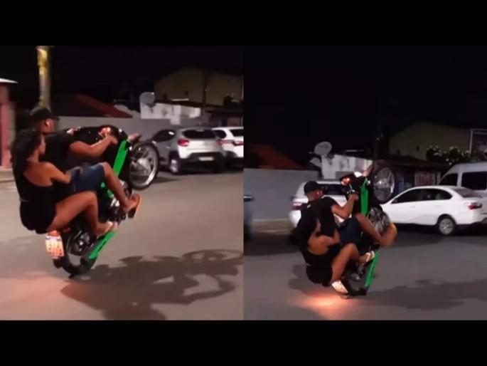 स्टंटबाबत लोकांमध्ये आजकाल फारच क्रेज आहे. काही लोक तर असे असतात की, ते संधी मिळताच स्टंट करतात. पण अनेकदा स्टंट करण्याच्या नादात मोठी दुर्घटनाही घडते. तरीही लोक स्टंट करणं काही सोडत नाहीत. व्हिडिओत तुम्ही बघू शकता की, एक तरूण वेगाने बाइक चालवत आहे आणि त्याच्या मागे एक तरूणी बसली आहे. बाइक चालवता चालवता अचानक तो बाइकचं समोर चाक वर उचलतो आणि त्याचा बॅलन्स बिघडतो. त्यानंतर दोघेही रस्त्यावर जोरात पडतात. ते इतके जोरात पडले की, त्यांना भरपूर लागलं असणार.