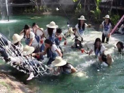 एक व्हिडीओ सोशल मीडियावर व्हायरल झाला आहे. ही घटना आहे थायलॅंडची. इथे मिस थायलॅंडसाठी फोटोशूट सुरू होतं. एका पूलावर जवळपास ३० मॉडल्स उभ्या राहून फोटोशूट करत होत्या. कॅमेरामन फोटो क्लिक करण्यासाठी रेडी होता. अशातच तो पूल पडला आणि सोबतच सर्व मॉडेल्स पुलासह पाण्यात पडल्या.
