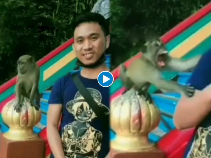 अनेक पर्यटनस्थळी माकडं असतात. त्यांना पाहताच अनेकांना त्यांचा फोटो काढण्याचा मोह आवरत नाही. काहीजण त्यांना खायला देतात आणि त्यांचे फोटो काढुन घेतात. एका तरुणाचा असाच प्रयत्न फसला आहे. तो तरुण त्या माकडासोबत सेल्फी घ्यायला गेला अन् राग आलेल्या माकडाने तरुणावरच हल्ला चढवला...