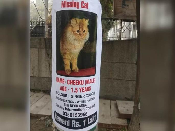 सध्या नोएडामध्ये एका हरवलेल्या मांजरीची जाहिरात पाहून अनेकांच्या भूवया उंचावल्या आहेत. आपली दीड वर्षाची मांजर हरवल्याने या मालकाने शहरात पोस्टर लावल्याचं पाहायला मिळत आहे. नोएडाच्या सेक्टर ६२ मध्ये १४ दिवसांपूर्वी एक मांजर हरवली होती. या मांजरीच्या मालकाने आपली मांजर शोधून देणाऱ्याला चक्क १ लाख रुपयांचे बक्षीस देण्याची जाहिरात केलीय. मांजरीच्या मालकाने जवळपास वेगवेगळ्या ठिकाणी पोस्टर, पॅम्पलेट लावल्याचं सांगण्यात येतंय. चीकू असं या हरवलेल्या मांजरीचं नाव आहे. जिंगर पार्शियन प्रजातीची ही मांजर हरवल्याने तिच्या मालकाने पोस्टर लावत मांजरीची संपूर्ण माहिती आणि त्याखाली १ लाख रुपयांचा इनाम देण्याचं जाहीर केलं आहे.